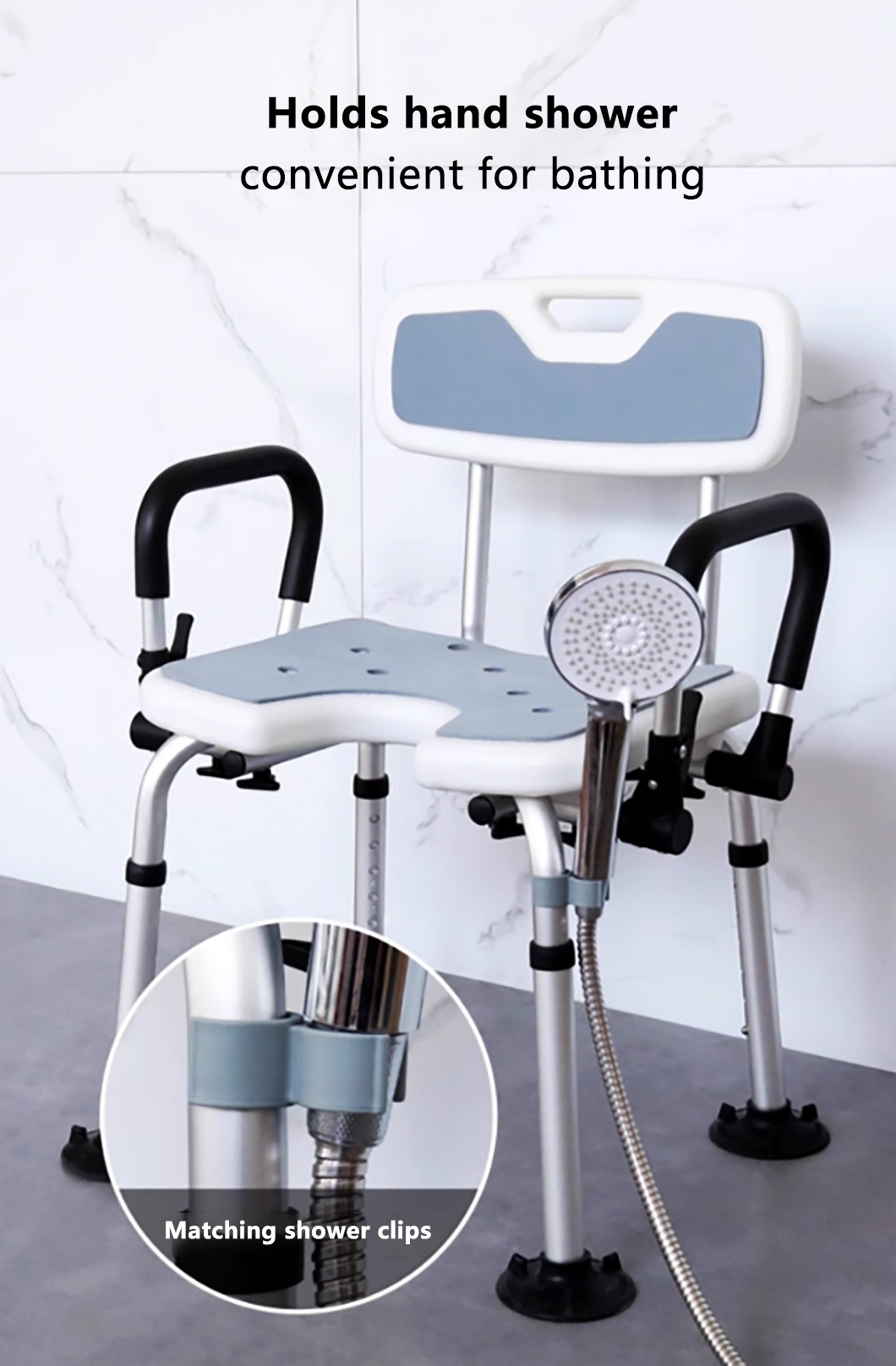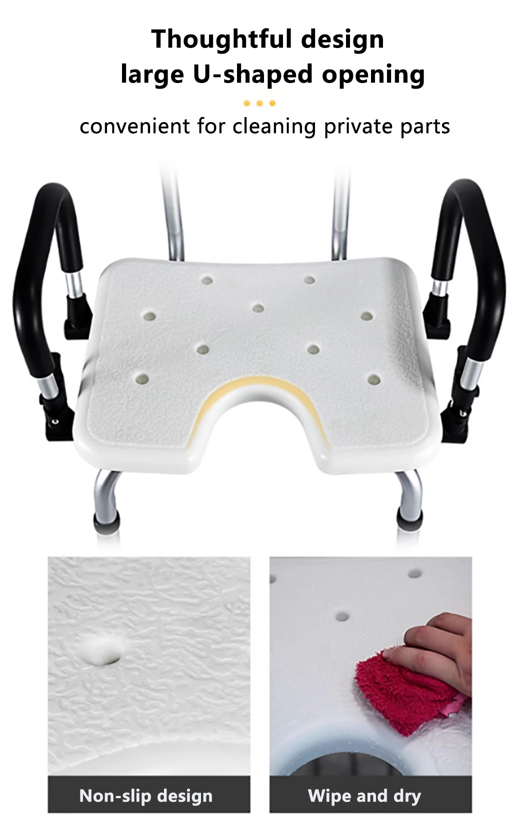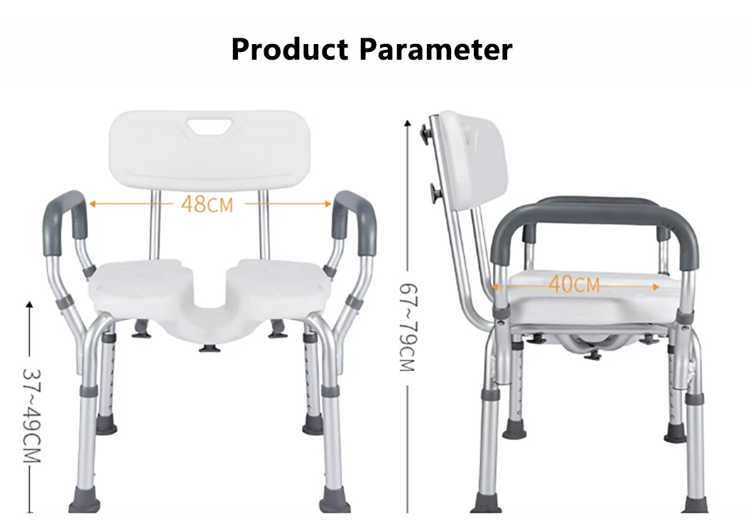 A specially designed bathroom seat for individuals with limited mobility, featuring an aluminum alloy frame and a padded seat surface