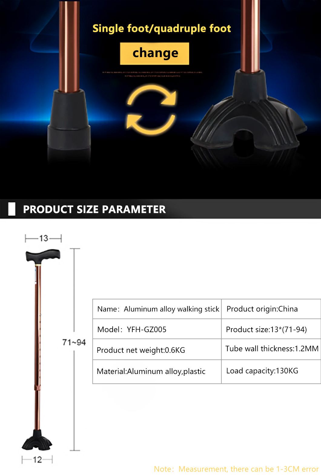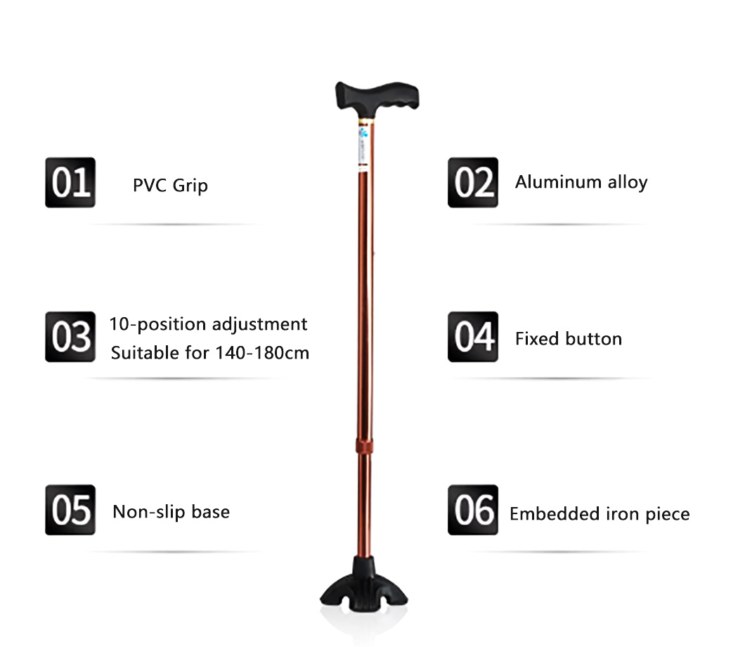 Aluminum alloy walking stick, adjustable length comfortable grip
