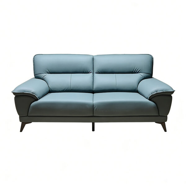 Ergonomically designed leather sofa set with wide armrests and a solid wood frame, suitable for reception area furniture