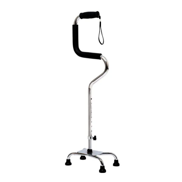 Four-legged cane with hand strap, u-shaped comfort grip, walking/shopping support cane