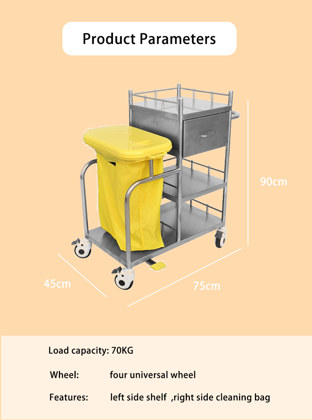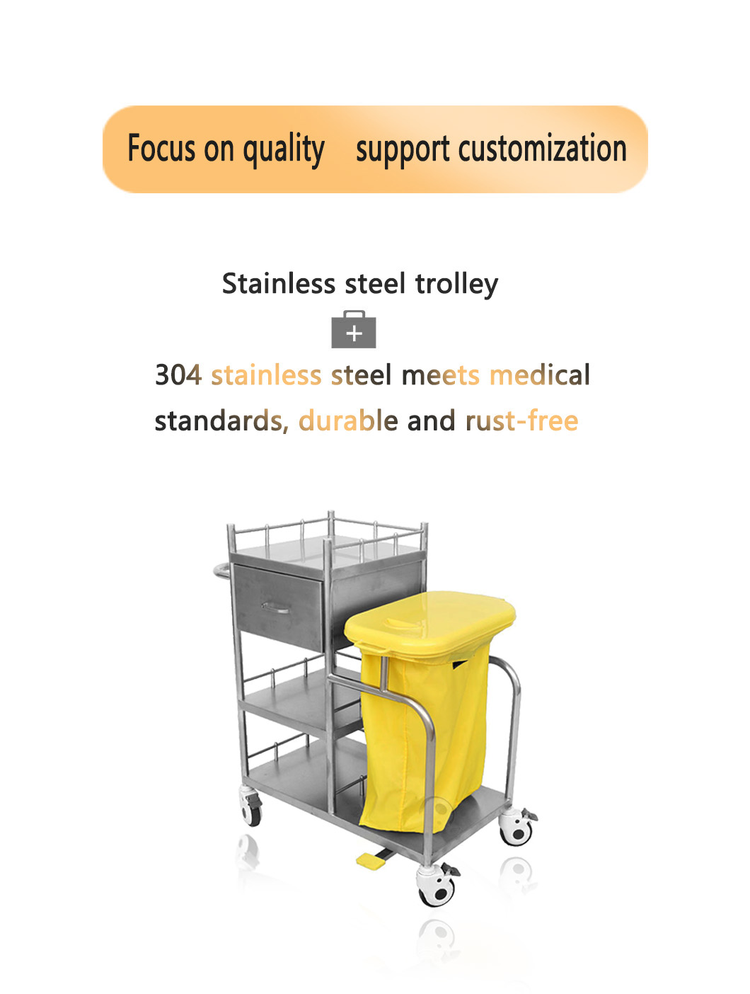 Heavy-duty stainless steel waste cart with pu morning cleaning trash bin