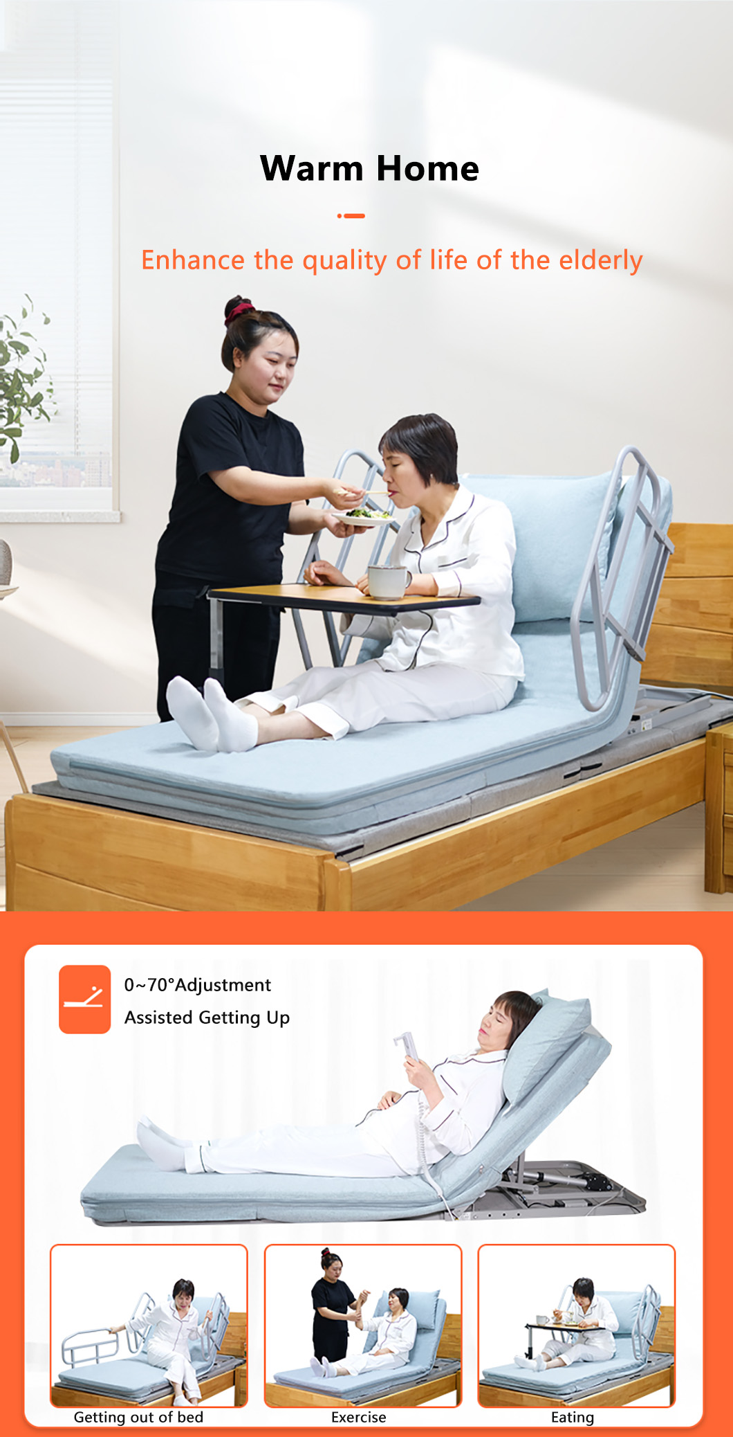 Electric lift-up backrest, assisting seniors, patients, and pregnant women to get out of bed