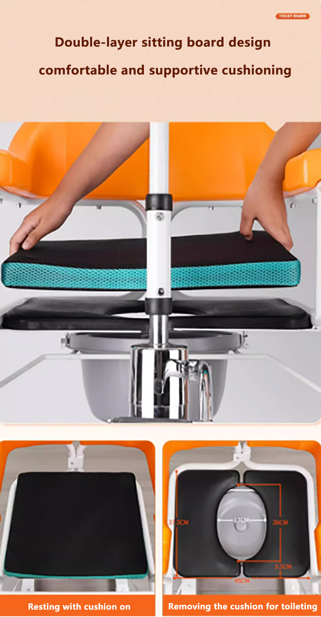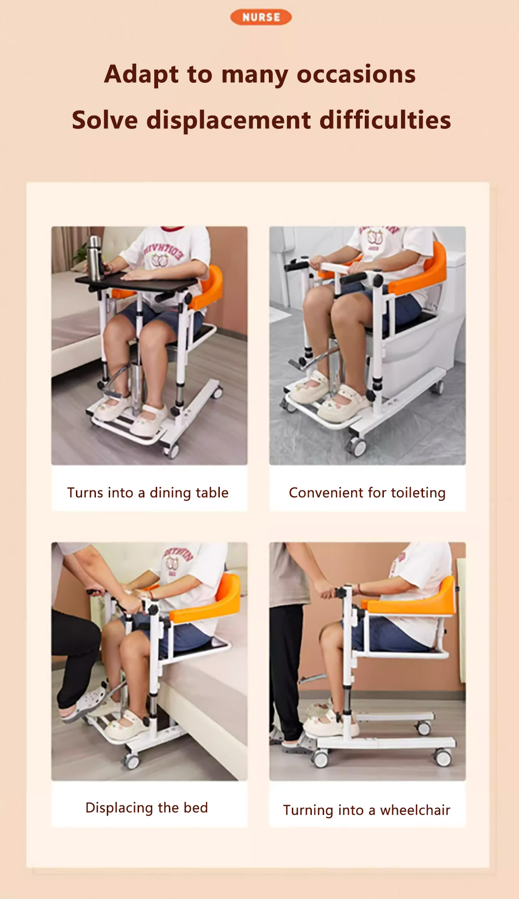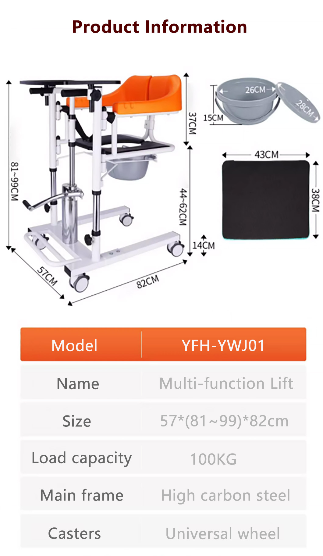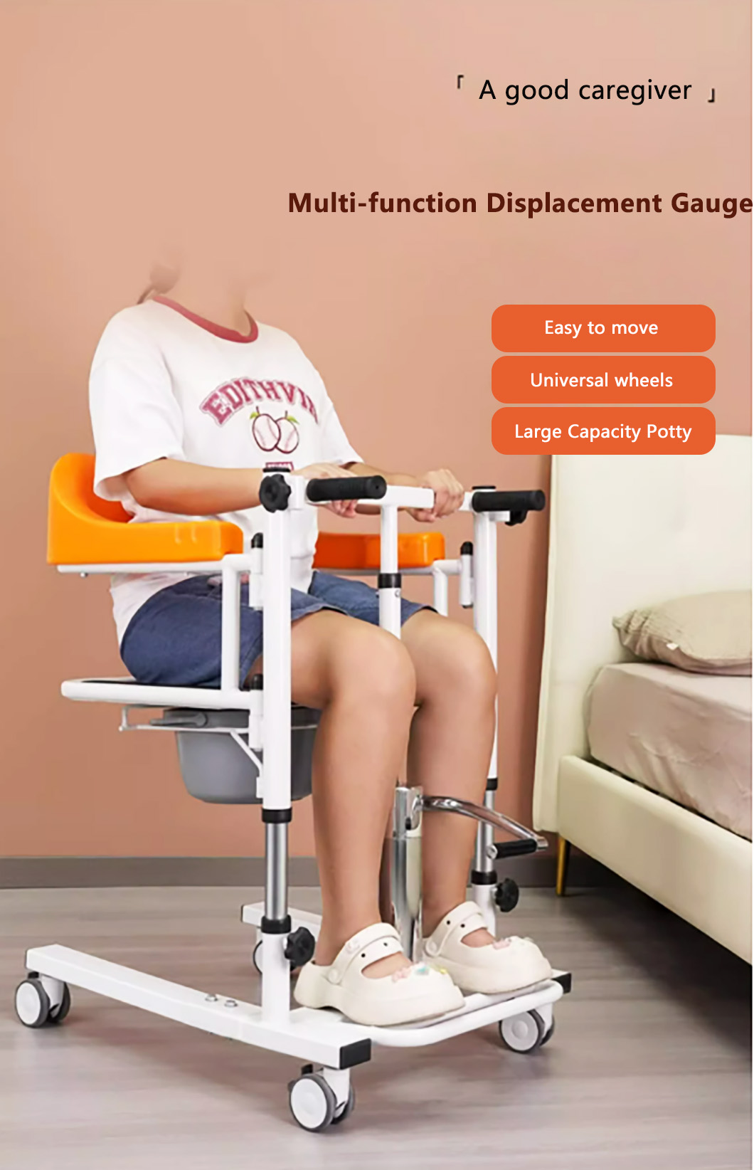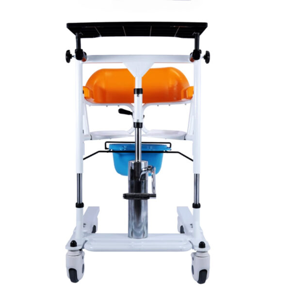 Hydraulic lift chair, assistive toilet chair for patient mobility, featuring 180-degree split seat