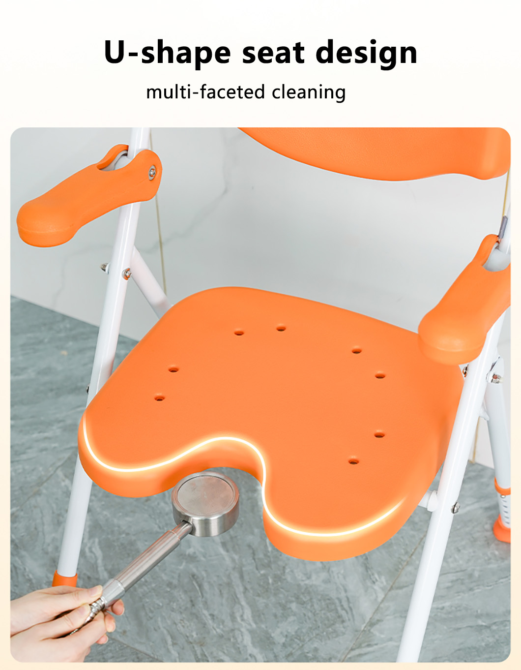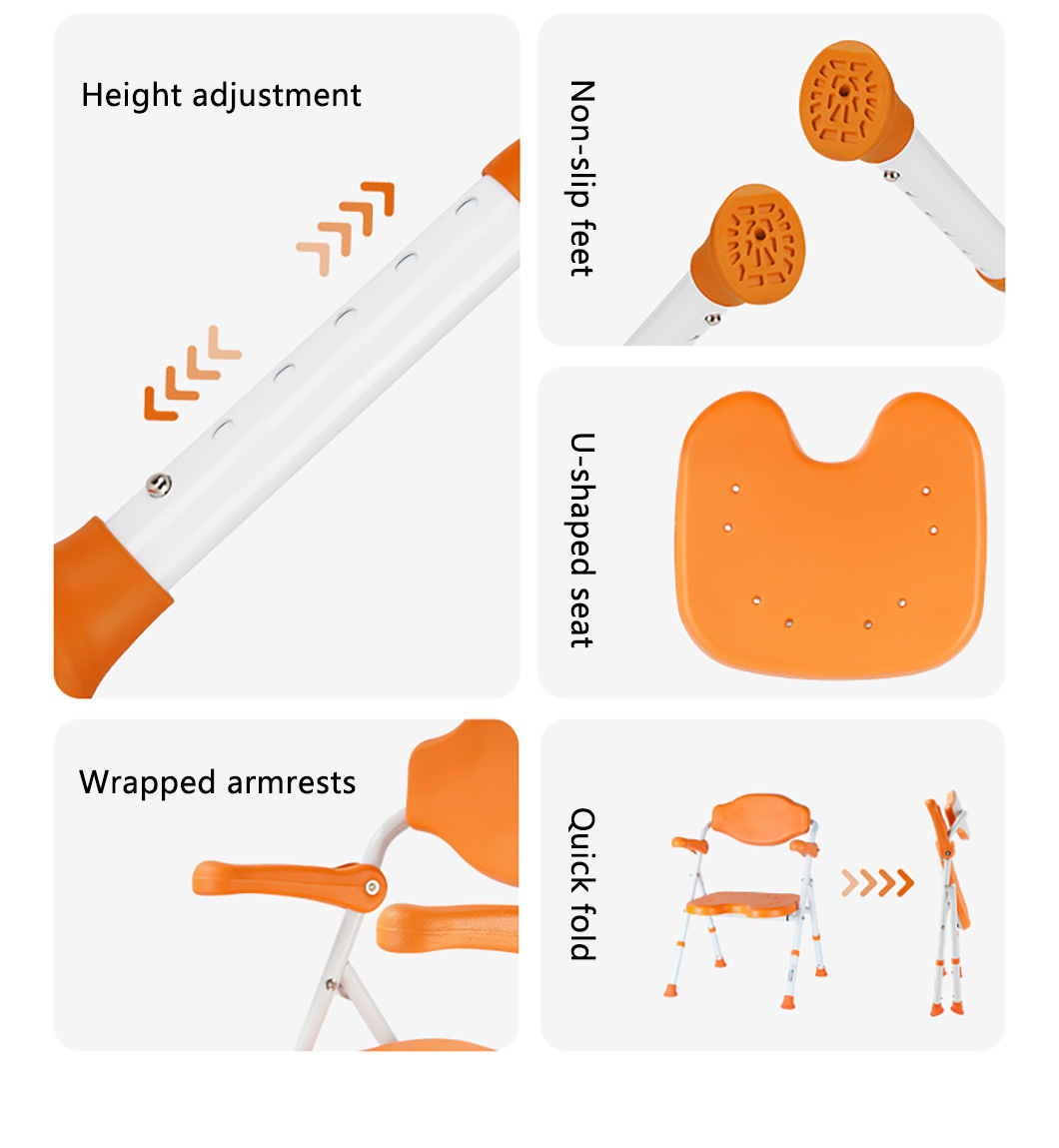 Folding bath chair suitable for nursing homes, home-use model with drainage hole and non-slip seat cushion