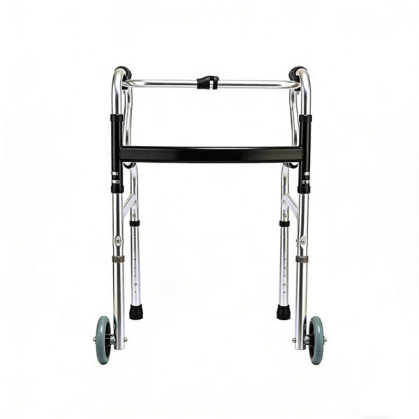 Silent-wheel walker mobility aid frame for rehabilitation period