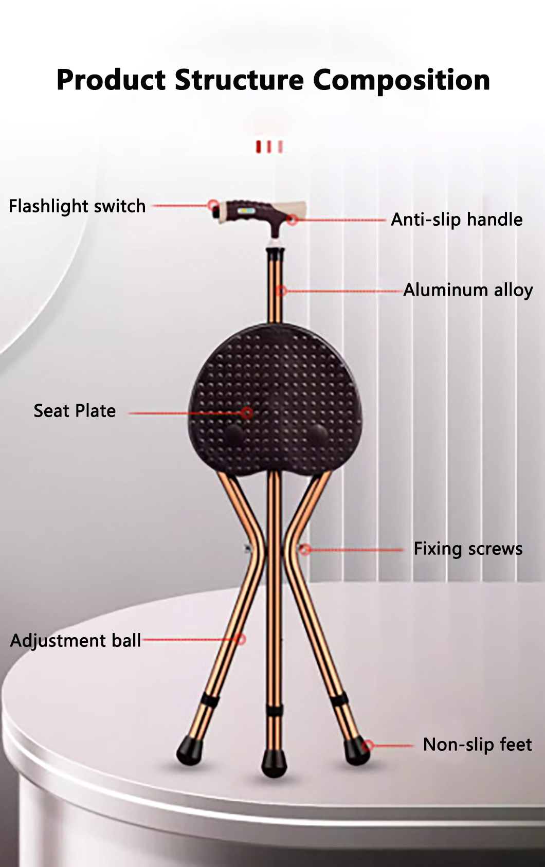 Tripod cane stool with seat dual purpose walking aid/temporary rest cane