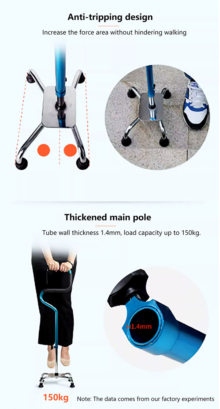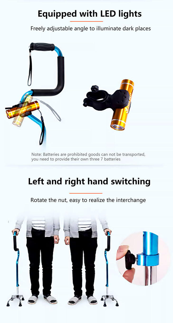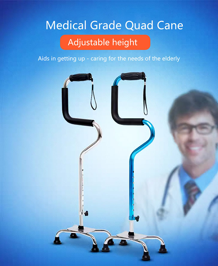 四腳手杖附手腕帶,U型舒適握柄,步行和購物輔助手杖